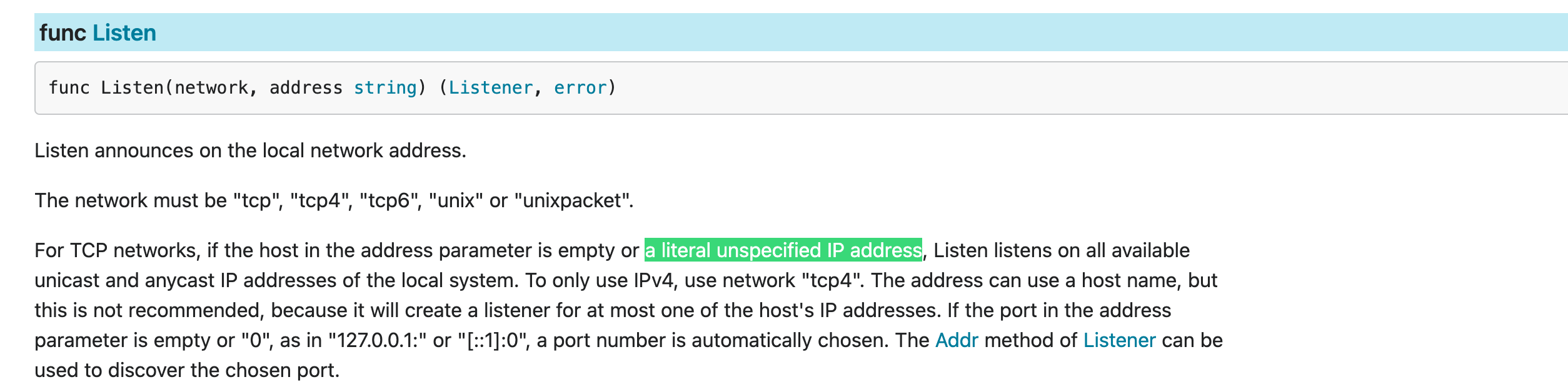 Here I'm highlighting **a literal unspecified IP address**, we're explicitly specifying IPv4 with **0.0.0.0**. Trying to show a sequence.
