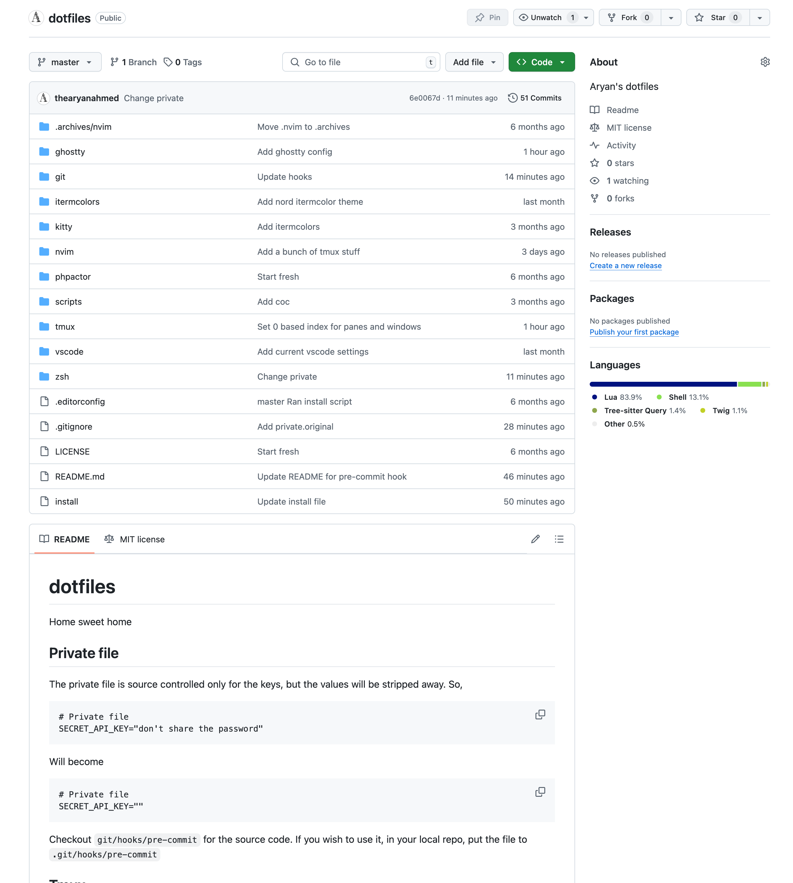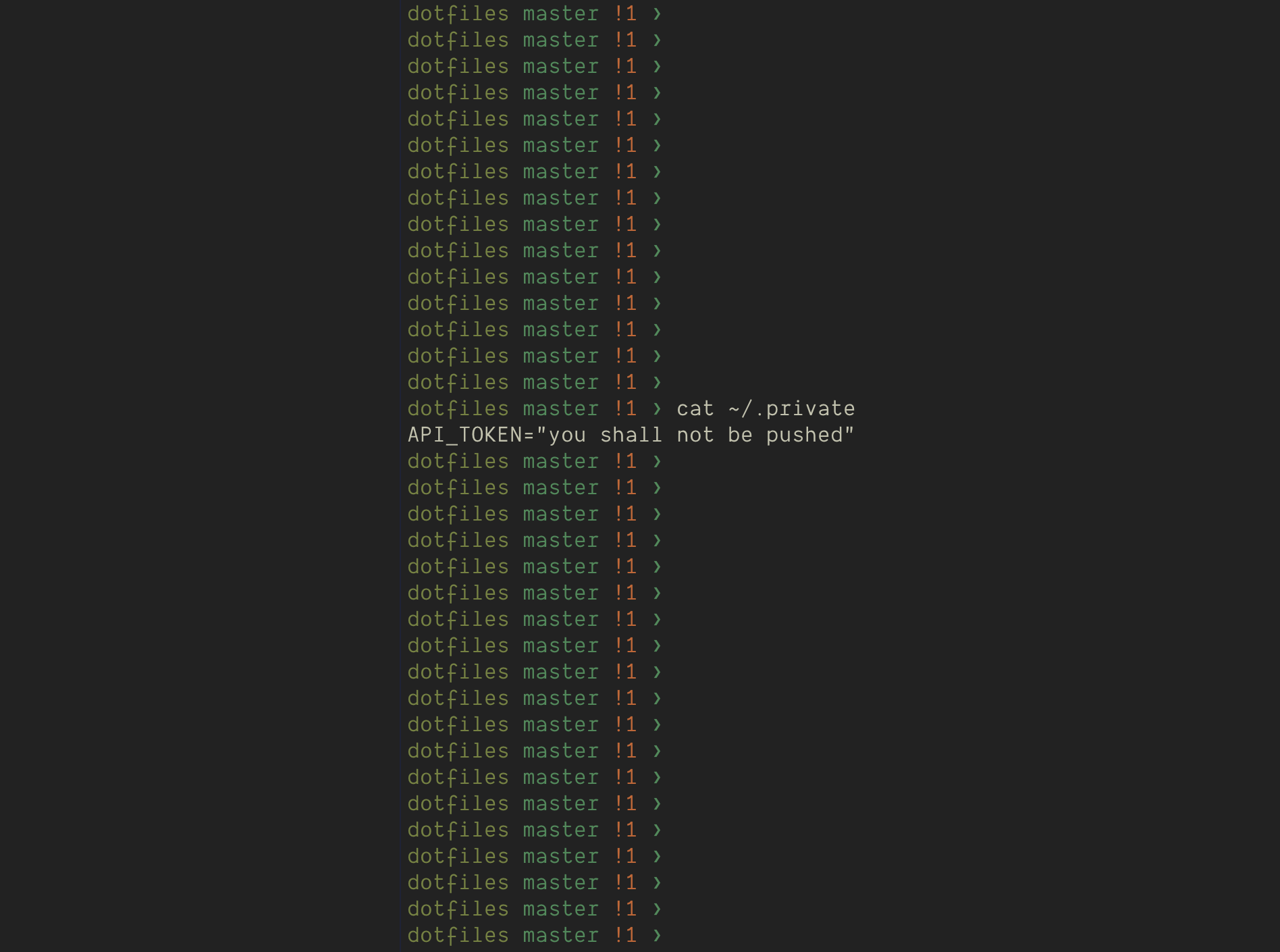 At least it's a hassle for me. So I was thinking, if I could commit a private file along with the dotfiles, which would have my secret env variables. But I don't want to commit the values.